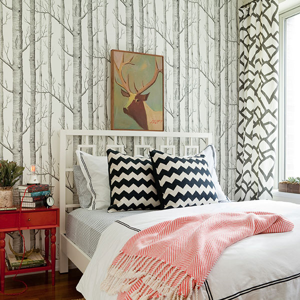 Hoạ tiết đem lại cho bạn rất nhiều lựa chọn thú vị. Ví dụ như, ta có thể dễ dàng tạo một tổng thế thiết kế khi bắt đầu với giấy dán tường hoạ tiết, đơn giản bằng cách lấy ra một màu trong số màu sắc hoạ tiết làm màu chủ đạo cho các món đồ khác như thảm trải sàn hay sofa.